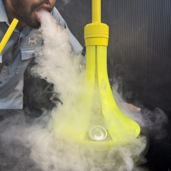 Shop Amotion Valve Hookah – 24" premium White stem with transparent glass base. Includes HMD, diffuser, silicone pipe & LED-ready design. Order now at Clesho!