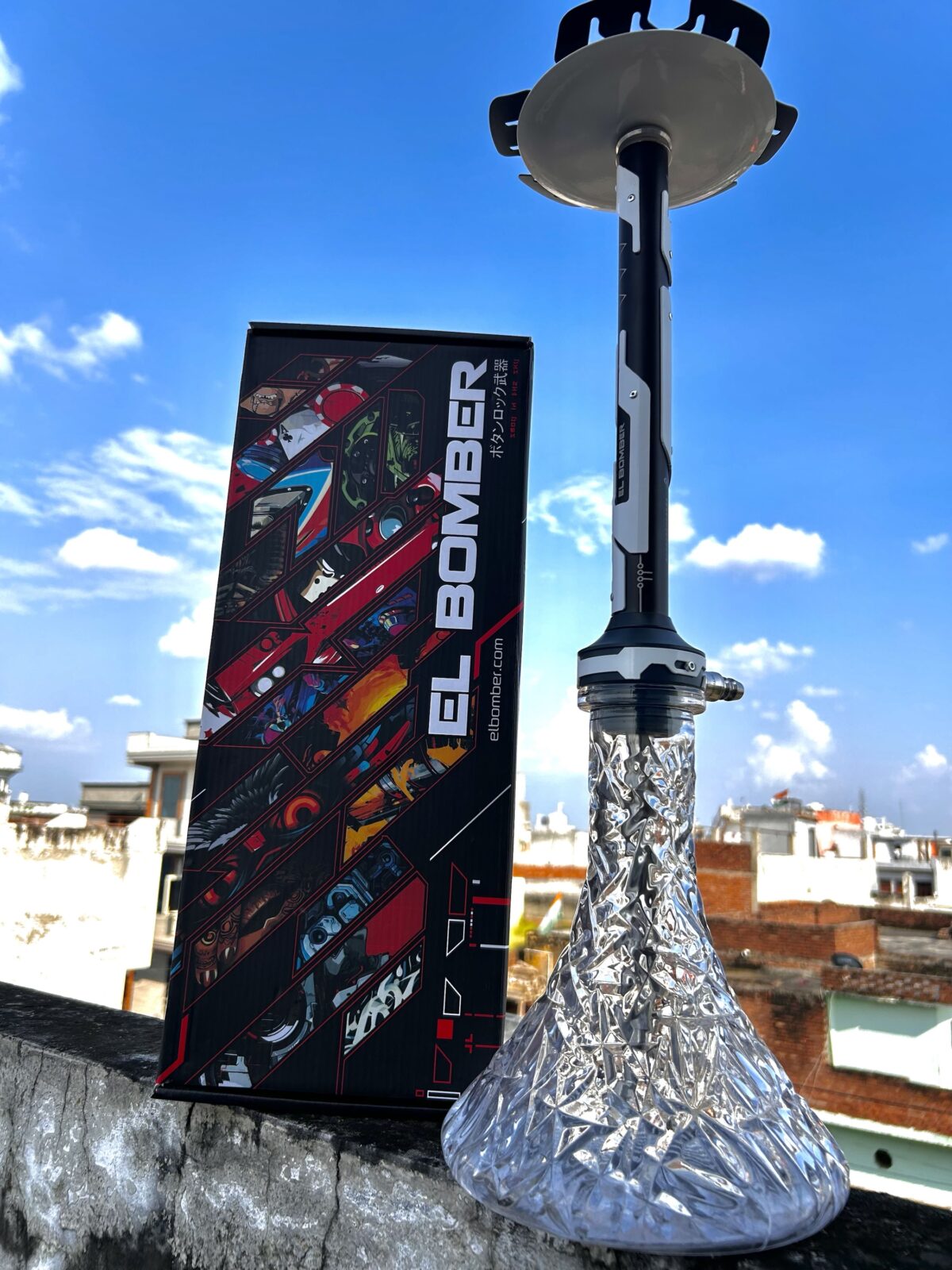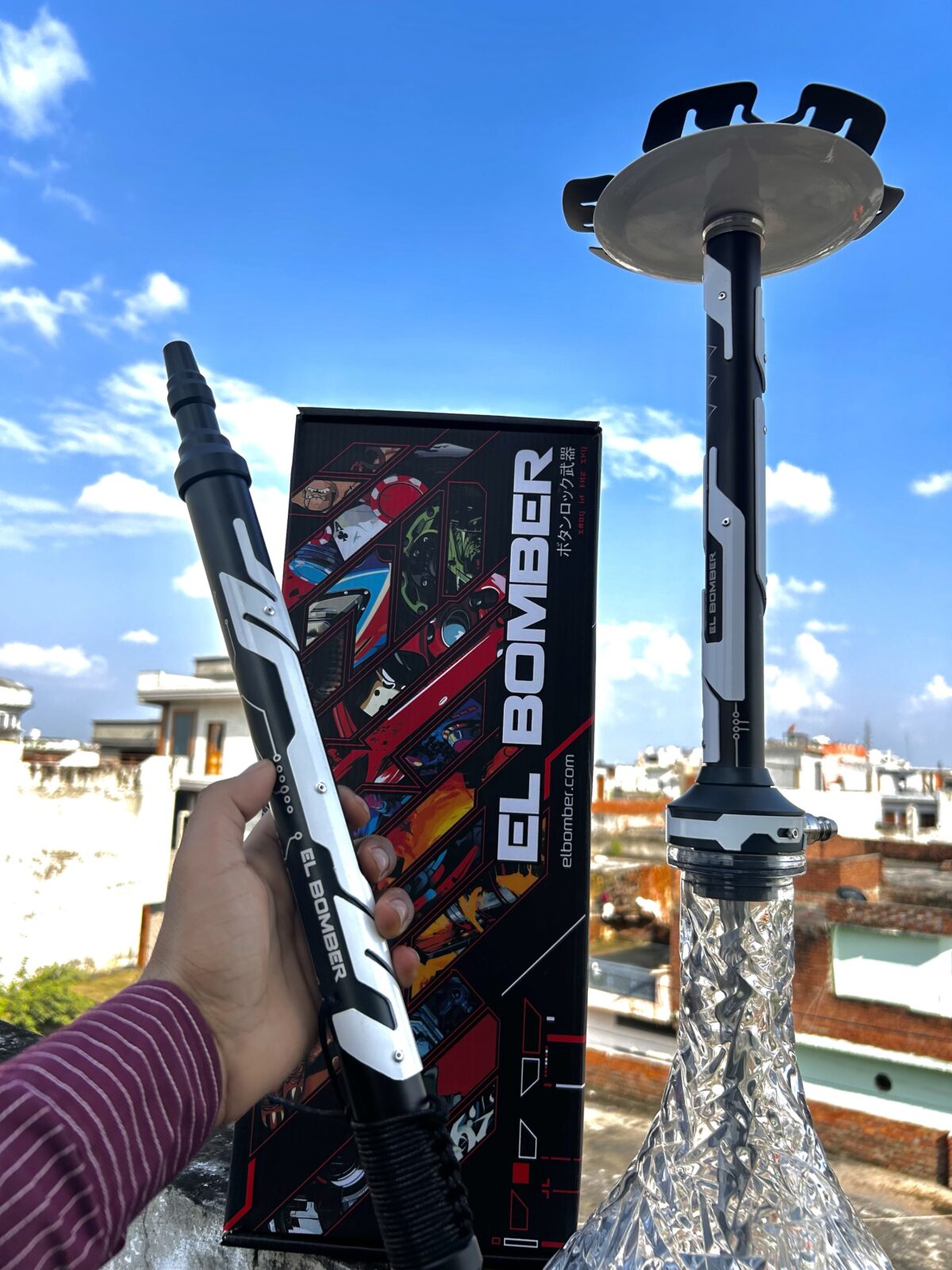 The El Bomber Jack Hookah – Blue Edition is a 30-inch premium shisha designed with a sturdy transparent glass base and sleek Blue stem. Comes complete with a silicone chillum, HMD, diffuser, premium silicone pipe with designer metal handle, and fancy coal tray. Perfect for stylish smokers who value both performance and elegance.