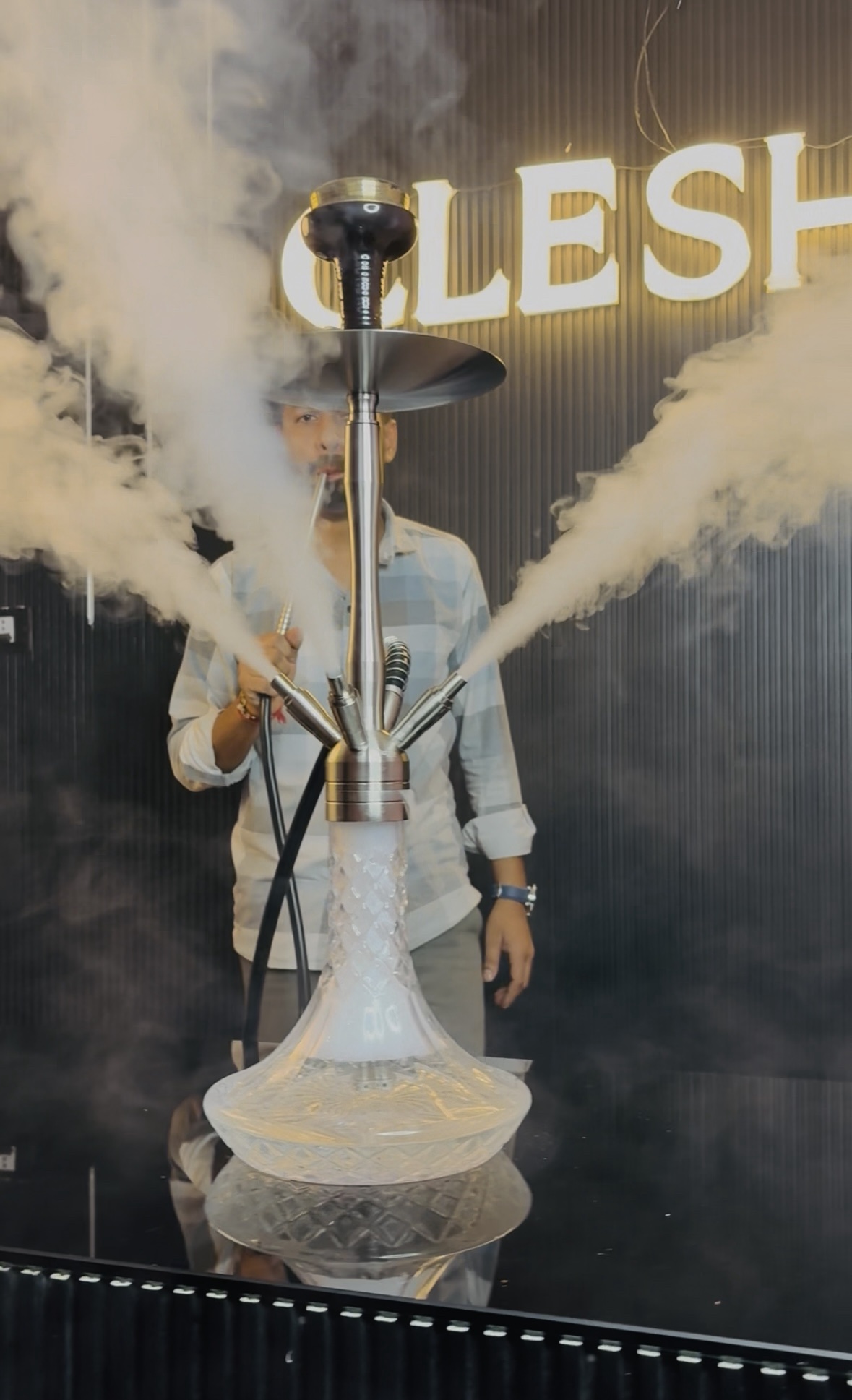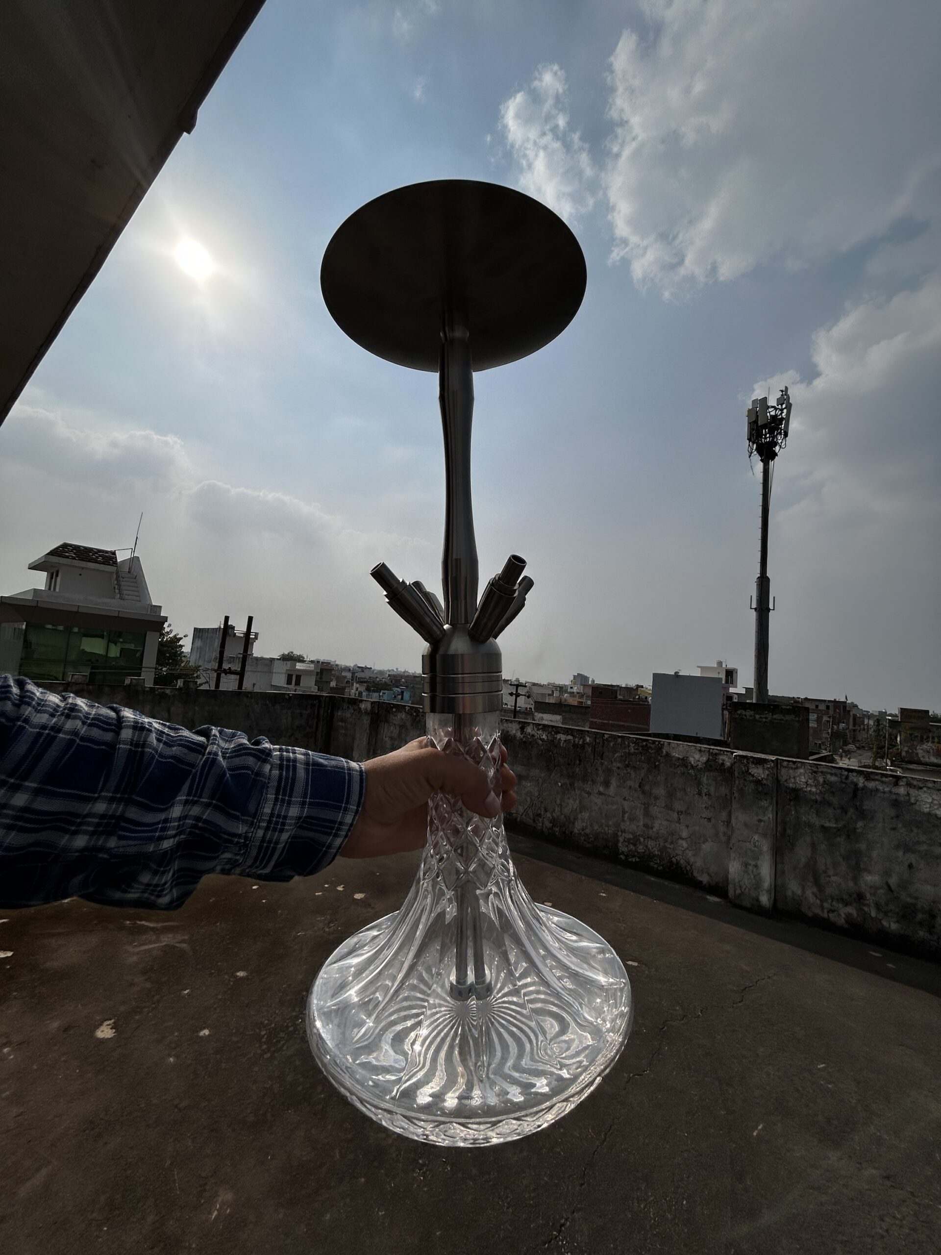 Experience a perfect balance of performance and design with this Premium 4-Pipe Hookah. Standing tall at 23 inches, it features a metallic stem, colorful glass base, and a sleek modern design—crafted to deliver smooth, dense, and flavorful sessions every time.