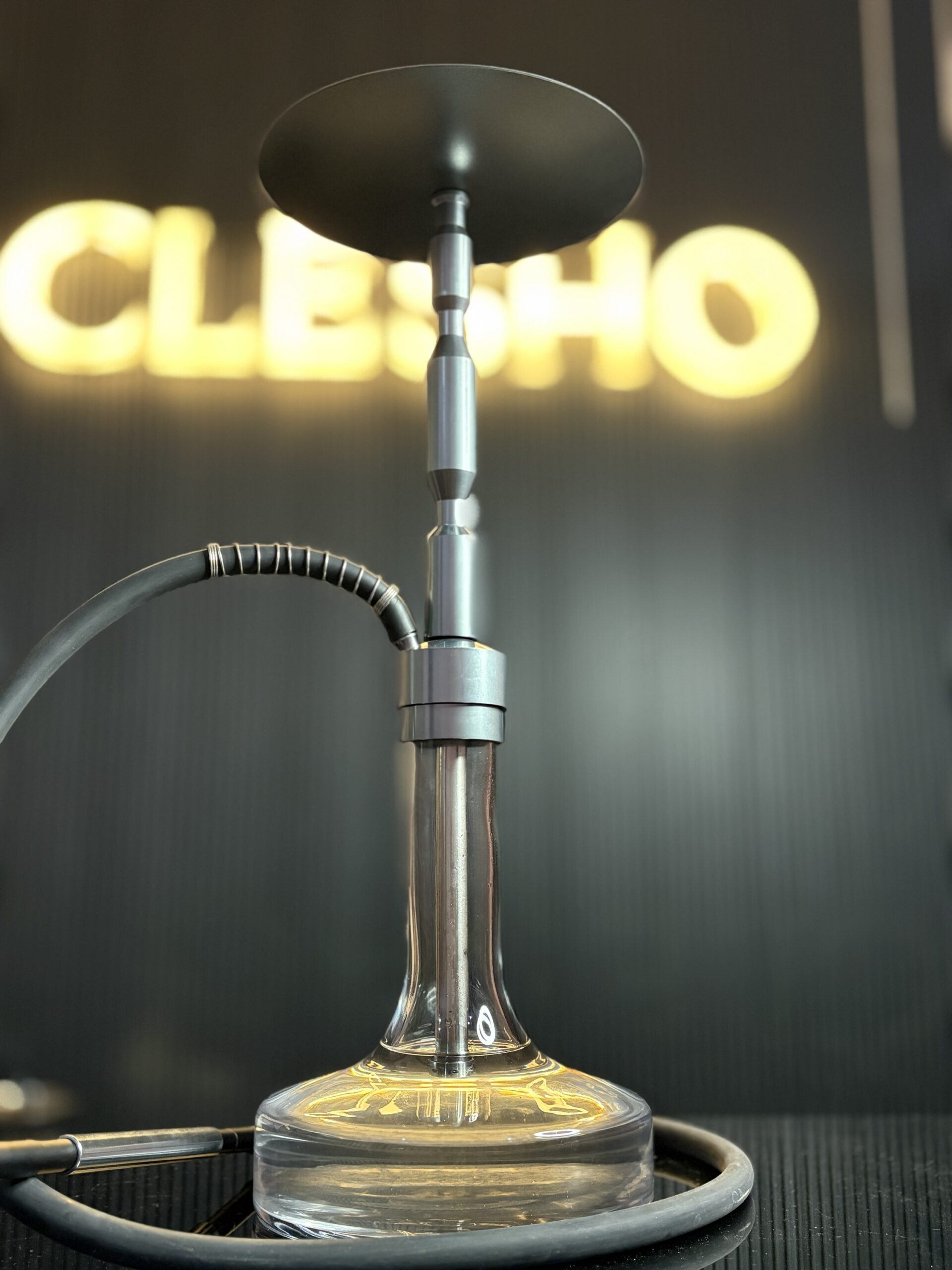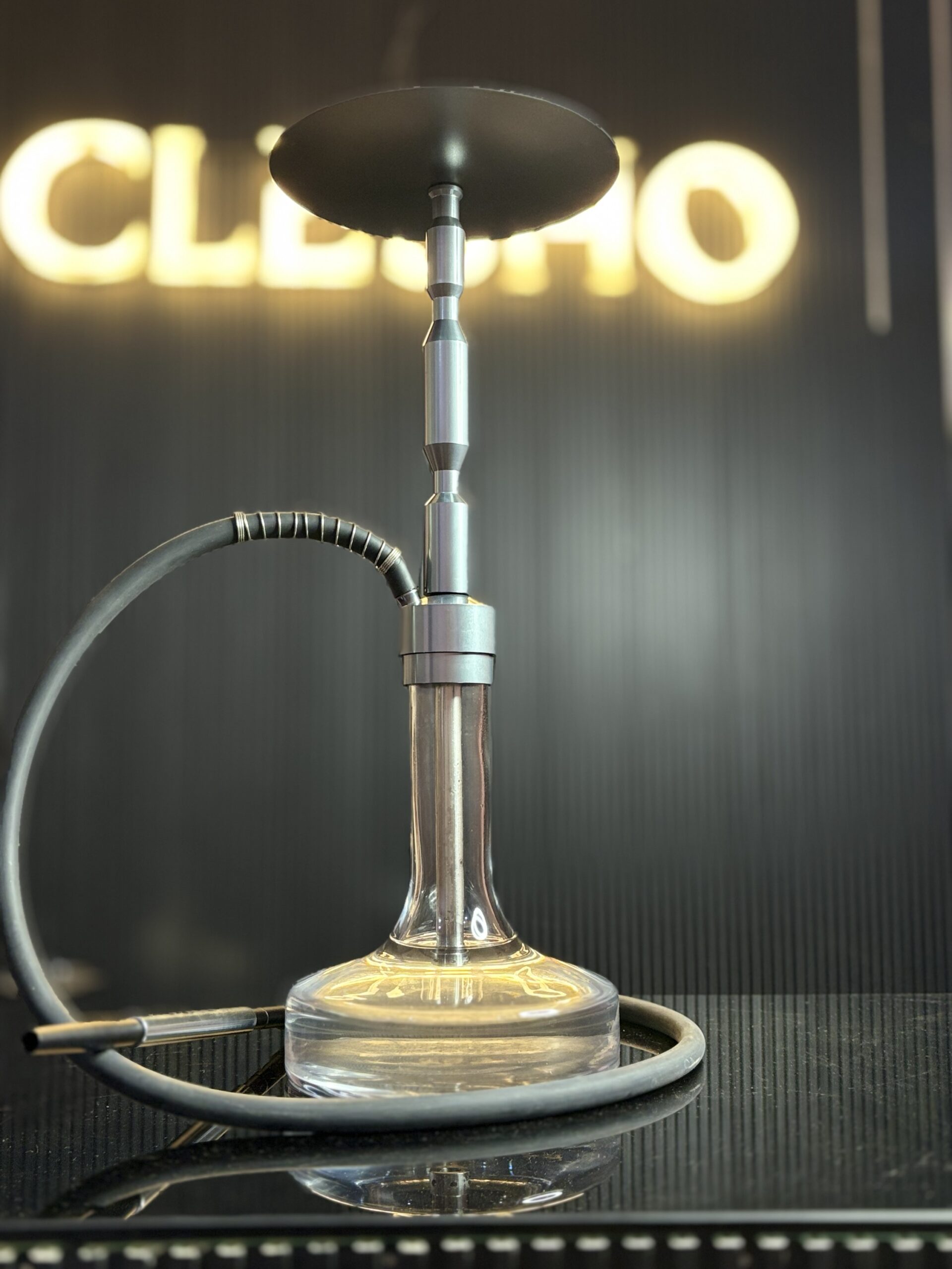 The VG France Alexander Hookah stands at 24 inches, featuring a sleek silver stem and a transparent cut-glass base for a modern, elegant look. Crafted from high-quality stainless steel, it includes a silicone bowl, HMD, and a silicone pipe for a smooth, flavorful experience. The hookah’s unique X-function design allows back smoke to flow through holes in the stem, while the included spring prevents pipe folding. A convenient fabric carry bag makes it portable, perfect for lounges and catering. With its lock system for easy handling and a durable, stylish build, the Alexander Hookah is ideal for both personal and professional use.